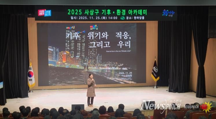 뉴스펀치 김길룡 기자 | 부산 사상구는 11월 25일 오후 2시 사상구청 한마당홀에서 관내 주민과 공무원을 대상으로 ‘기후위기와 적응 그리고 우리’를 주제로 한 ‘2025년 사상구 기후·환경 아카데미’를 개최했다고 밝혔다.