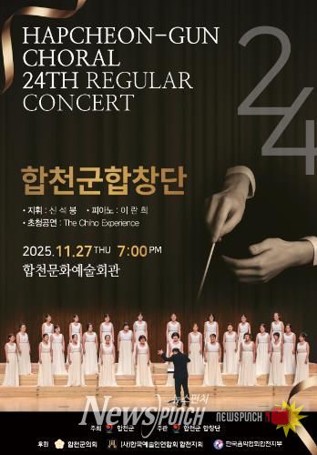 뉴스펀치 김길룡 기자 | 합천군합창단은 오는 11월 27일 오후 7시부터 9시까지 합천문화예술회관 대공연장에서 ‘제24회 정기연주회’를 개최한다.