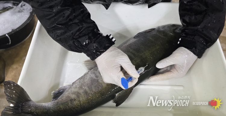 뉴스펀치 김길룡 기자 | 경상북도 수산자원연구원에서는 전량 수입에 의존하는 연어류를 국내산 양식 연어로 대체하기 위한 완전양식 기술개발의 핵심 기술인 양식산 K-연어의 인공 채란에 성공했다.