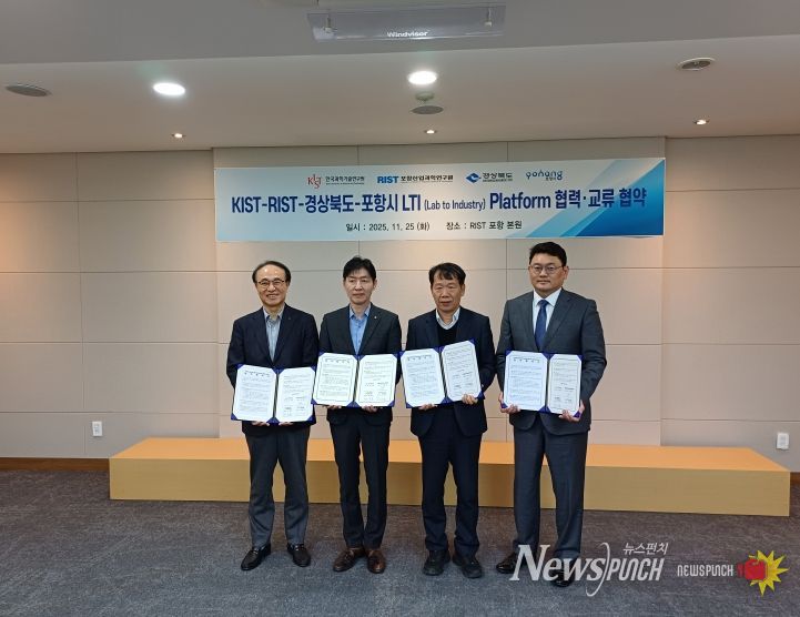 뉴스펀치 김길룡 기자 | 경상북도는 25일 포항산업과학연구원에서 포항시, 한국과학기술연구원(KIST), 포항산업과학연구원(RIST)과 함께 청정연료 생산기술 관련 ‘LTI 플랫폼 기반 그린-올 생산기술 개발 실증사업’ 추진을 위한 업무협약(MOU)을 체결했다.