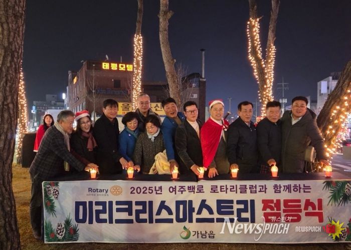 뉴스펀치 김길룡 기자 | 가남읍은 11월 25일 오후 6시, 가남읍 태평리 소나무공원 옆에서 가남백로로타리클럽 주관으로 ‘2025 가남읍 미리크리스마스트리 점등식’을 성황리에 개최했다고 밝혔다.