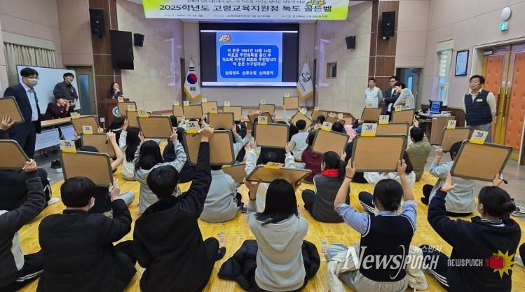 뉴스펀치 김길룡 기자 | 경상북도고령교육지원청은 11월 24일 고령교육지원청 3층 대가야홀에서 관내 초・중학교 학생 43명을 대상으로‘2025학년도 독도골든벨’을 개최했다.