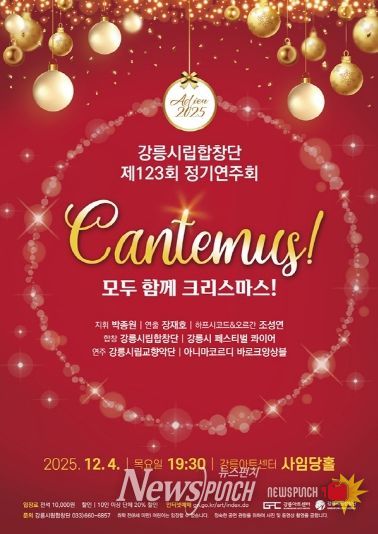 뉴스펀치 김길룡 기자 | 강릉시가 다채로운 공연과 전시를 마련해 시민과 관광객들에게 따뜻하고 풍성한 연말정취를 선사한다. 세계적인 현대미술 작가 캐서린 번하드 특별전과 국내 작가 콰야의 전시를 비롯해 강릉시립합창단의 제123회 정기연주회 및 기획공연, 초당작은도서관 크리스마스 이벤트 등으로 문화와 겨울 바다를 동시에 즐길 수 있는 강릉만의 특별한 연말 분위기를 만들 것으로 기대된다.