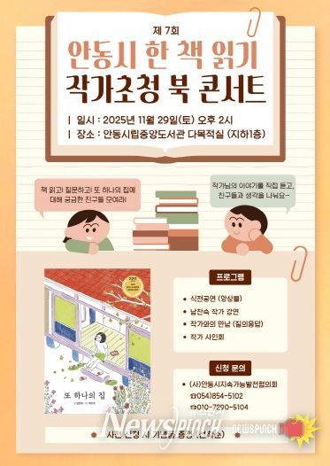 이번 행사는 안동시민들이 올해의 한 책을 함께 읽고 소통하는 문화 조성을 위해 마련된 것으로, 2025년 올해의 선정 도서인 ‘또 하나의 집’ 저자인 남찬숙 작가를 직접 만나 책의 배경과 집필 과정, 메시지 등을 깊이 있게 들을 수 있는 자리로 꾸며진다.