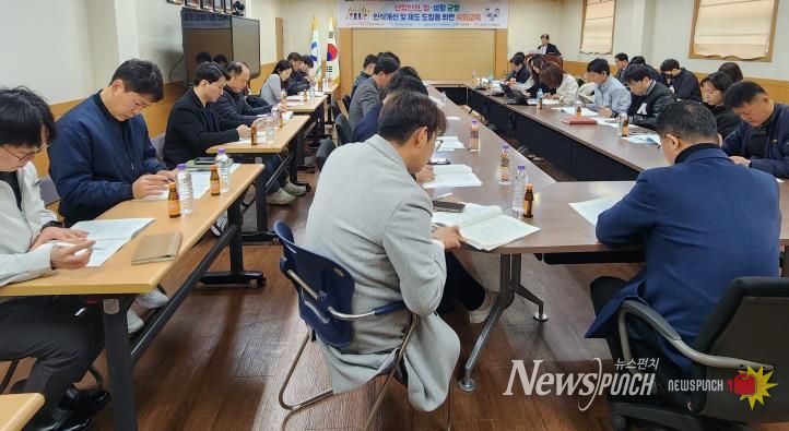 뉴스펀치 김길룡 기자 | 평택시는 지난 25일 고용노동부, 경기도 및 평택시 노사민정협의회와 공동으로 송탄산업단지관리공단에서 고용주와 근로자 40여 명을 대상으로 산업안전 및 일과 생활 균형을 위한 특화교육을 진행했다.