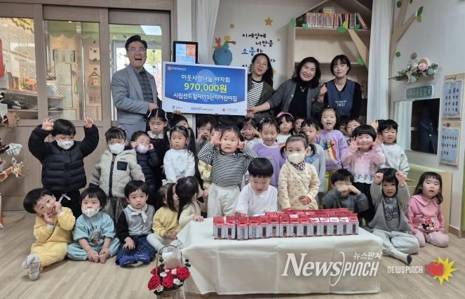 뉴스펀치 김길룡 기자 | 시립센트럴자이1단지어린이집은 지난 24일 어린이집 부모참여 활동의 하나인 ‘자이랜드’놀이 행사를 통해 마련된 수익금 97만 원을 평택행복나눔본부에 전달했다.