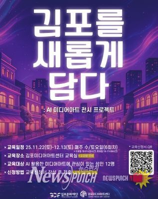 뉴스펀치 김길룡 기자 | (재)김포문화재단은 11월 22일부터 12월 13일까지 '김포를 새롭게 담다: AI 미디어아트 전시 프로젝트'를 김포미디어아트센터에서 진행한다.
