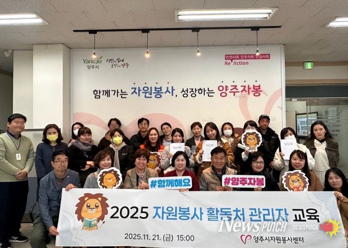 뉴스펀치 김길룡 기자 | 양주시자원봉사센터는 지난 21일 센터 다목적실에서 “2025 활동처 관리자 교육”을 실시했다고 밝혔다.