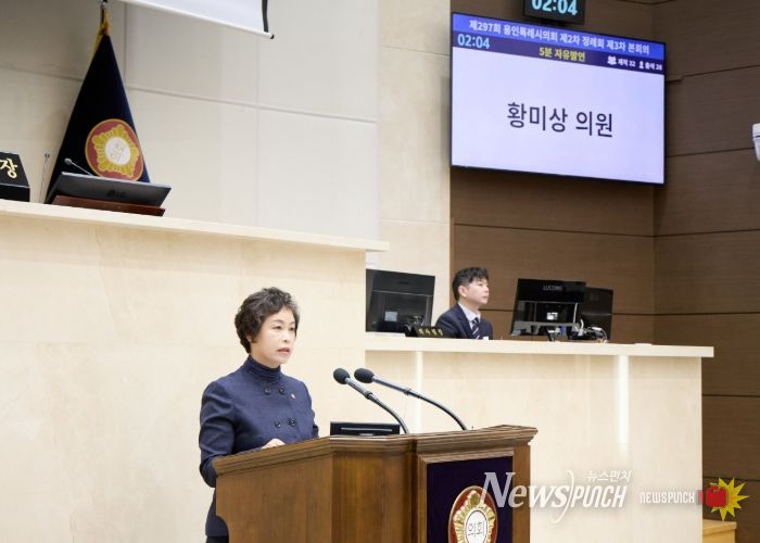 뉴스펀치 김길룡 기자 | 용인특례시의회 황미상 의원(포곡·모현·유림·역북·삼가동/더불어민주당)은 26일 열린 제297회 2차 정례회 본회의 5분 자유발언을 통해 용인 ‘무명의병(無名義兵) 보존 정책’의 체계적 추진과 처인구 대중교통 사각지대 해소를 위한 버스 노선 전면 재정비를 촉구했다.