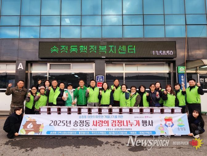 이에 대해 김선영·구자경 송정동 지보체 공동위원장은 “정성이 담긴 김장 김치가 어려운 이웃들에게 따뜻한 겨울을 선물하길 바란다”며 “앞으로도 주민이 체감하는 현장 중심의 복지 지원을 지속적으로 강화하겠다”고 말했다.