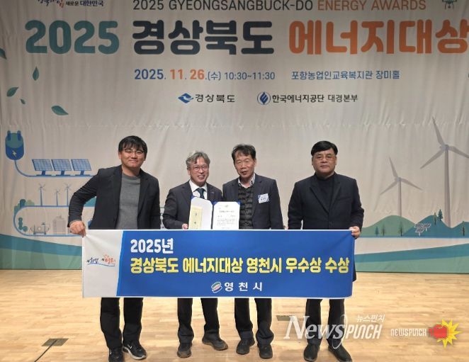 뉴스펀치 김길룡 기자 | 영천시는 26일 포항 농업인교육복지관에서 경상북도가 주최한 ‘2025 경상북도 에너지대상’ 평가에서 공공부문 우수상을 수상했다.