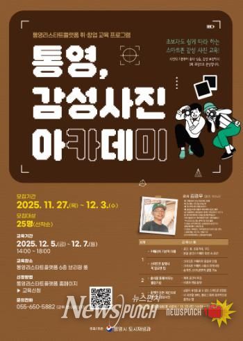 뉴스펀치 김길룡 기자 | 통영시는 오는 27일부터 통영시민을 대상으로 ‘통영, 감성사진 아카데미’ 교육생 25명을 선착순 모집한다.