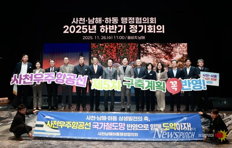 뉴스펀치 김길룡 기자 | 사천시, 남해군, 하동군이 참여하는 ‘사천-남해-하동 행정협의회’가 11월 26일 쏠비치 남해 밀라노홀에서 2025년 하반기 정기회의를 개최했다.