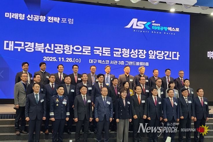 뉴스펀치 김길룡 기자 | 경상북도는 대구시와 공동으로 26일 대구 EXCO에서 대구경북신공항을 기반으로 국토 균형성장과 대구・경북 상생발전에 대한 전략적 방향을 모색하기 위해 ‘2025 미래형 신공항 전략 포럼’을 개최했다.