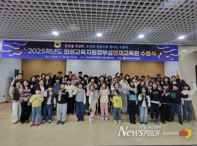 뉴스펀치 김길룡 기자 | 경상북도의성교육지원청은 11월 26일, 대회의실에서 2025학년도 의성교육지원청부설영재교육원 수료식을 개최했다. 이번 수료식에는 초등발명·메이커반과 초등SW-AI반에서 1년간 열정을 다해 학습하여 수료한 학생 29명과 학부모 및 지도 강사 등 총 60여 명이 참석하여 영재 학생들의 성장을 함께 축하했다.