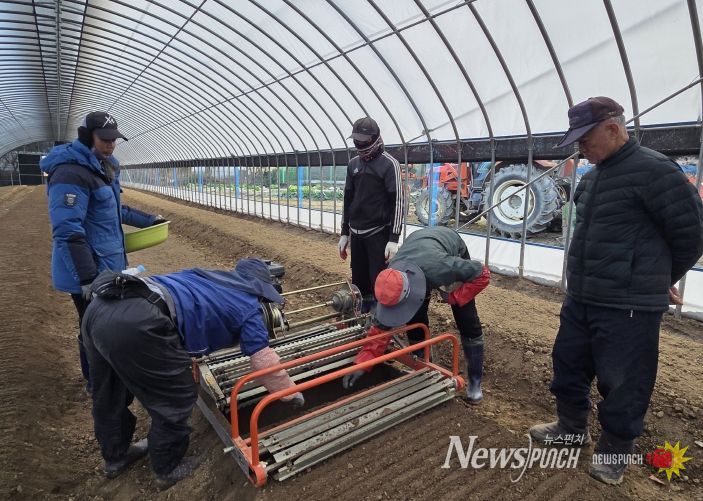 뉴스펀치 김길룡 기자 | 예천군은 26일, 감천면 석송로 소재 인삼 재배 농가에서 ‘내재해형 인삼 이중구조하우스’를 활용한 인삼 정식을 실시했다.