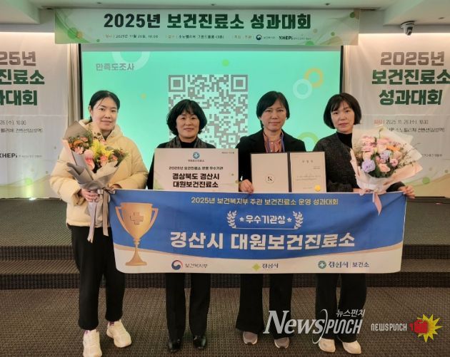 뉴스펀치 김길룡 기자 | 경산시는 26일 서울 소노펠리체컨벤션에서 열린 보건복지부 주관의 ‘2025년 전국 보건진료소 운영 성과대회’에서 우수 기관상을 수상했다.
