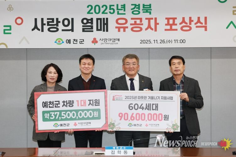뉴스펀치 김길룡 기자 | 예천군은 26일 오전, 경북사회복지공동모금회(회장 전우헌)가 주최하는 ‘2025 경상북도 찾아가는 이웃돕기 유공자 포상식’이 예천군청에서 열렸다고 밝혔다.