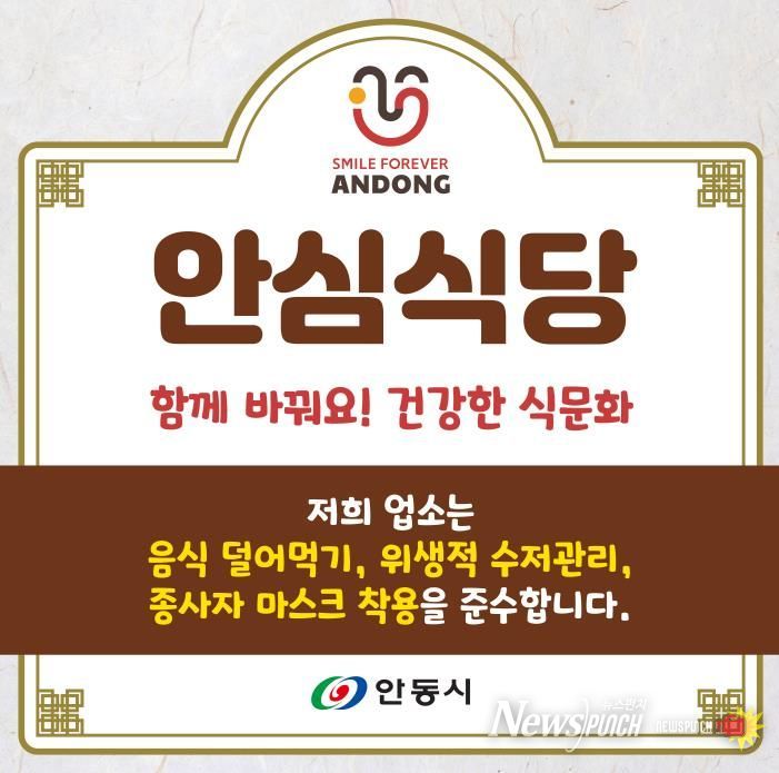 뉴스펀치 김길룡 기자 | 안동시는 2020년 도입된 안심식당 지정제를 지역 실정에 맞춘 ‘안동형 안심식당’으로 전환해, 음식문화 개선사업의 일환으로 지속 운영하고 있다고 밝혔다.