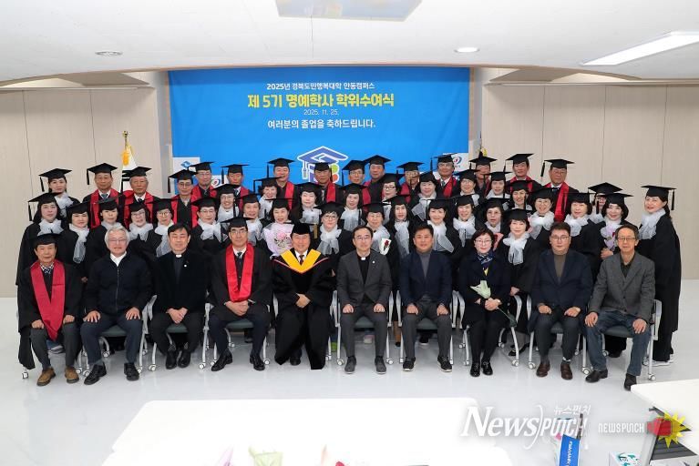 뉴스펀치 김길룡 기자 | 안동시는 11월 25일 가톨릭상지대학교 두봉관에서 ‘제5기 경북도민행복대학 안동캠퍼스 명예학사학위 수여식’을 열었다.