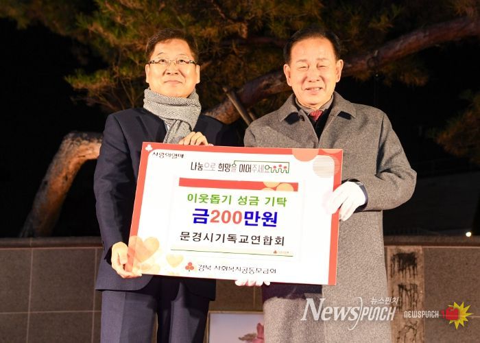뉴스펀치 김길룡 기자 | 문경시기독교연합회는 지난 25일 문경시 모전공원 광장에서 열린 ‘2025 시민화합 성탄트리 점등식’을 기념해 지역 내 소외계층을 위한 이웃돕기 성금 200만 원을 문경시에 기탁했다.