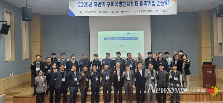 뉴스펀치 김길룡 기자 | 구미시는 11월 26일 금오테크노밸리 IT의료융합기술센터 대강당에서 '2025년 구미국방벤처센터 협약기업 간담회'를 열고 지역 방산기업의 성장 전략을 논의했다. 간담회에는 정성현 구미시 부시장과 구미국방벤처센터 협약기업 31개사를 포함해 50여 명이 참석했다.