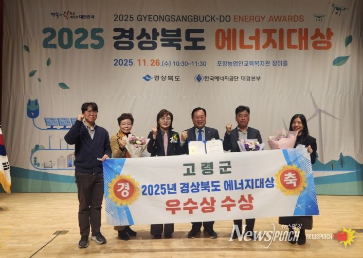 뉴스펀치 김길룡 기자 | 고령군은 2025년 11월 26일 경상북도가 주최하고 한국에너지공단 대구경북지역본부가 주관한『2025년 경상북도 에너지대상』에서 우수 시군에 선정되는 성과를 거두며 상사업비 2천5백만원을 받았다.