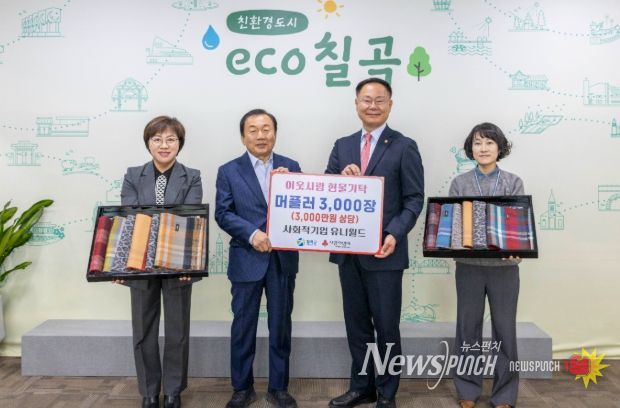 뉴스펀치 김길룡 기자 | 사회적 기업 유니월드(대표 최장희)에서 지난 24일 월요일 겨울을 맞아 겨울 머플러 3,000개(3,000만원 상당)을 관내 어려운 이웃을 위해 써달라며 기탁 했다.