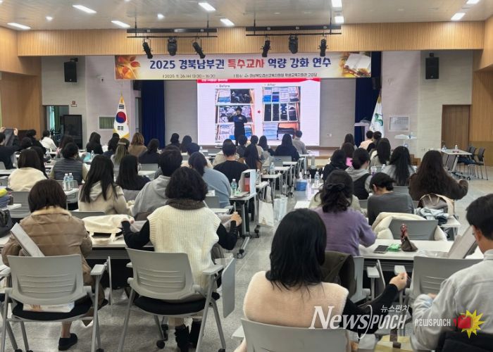 뉴스펀치 김길룡 기자 | 경산교육지원청 특수교육지원센터는 11월 26일 학생교육지원관 2강당에서 경북 남부권(경산, 영천, 청도, 경주) 유, 초, 중, 고등학교 특수교사 110여 명을 대상으로'특수교사 역량 강화 연수'를 실시했다.