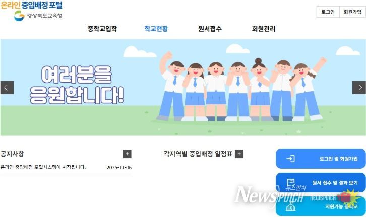 뉴스펀치 김길룡 기자 | 경북교육청은 12월 1일부터 2026학년도 중학교 입학 배정을 위한 원서 접수를 전국 최초로 온라인 시스템을 통해 시행한다고 밝혔다.