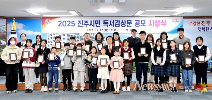 뉴스펀치 김길룡 기자 | 진주시는 지난 27일 시청 3층 문화강좌실에서 ‘2025 진주시민 독서감상문 공모 시상식’을 개최했다.