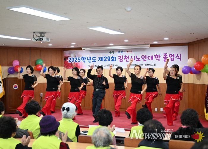 뉴스펀치 김길룡 기자 | 김천시는 27일, 대한노인회 김천시지회 주최로 『2025년 김천시 노인대학 졸업식』을 개최했다.