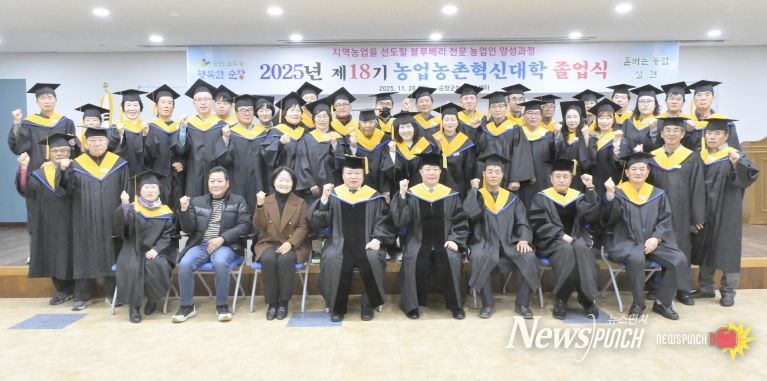 뉴스펀치 정홍균 기자 | 순창군은 28일 농업기술센터 다목적 강당에서 제18기 농업농촌혁신대학 졸업식을 개최하고, 9개월간의 교육과정을 성실히 이수한 교육생들에게 졸업장을 수여했다.