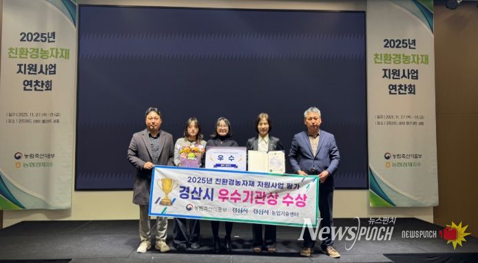 뉴스펀치 김길룡 기자 | 경산시는 27일 세종시 코트야드 메리어트에서 열린 농림축산식품부 주관의 2025년 친환경농자재 지원사업 연찬회에서 '친환경농자재 지원사업 평가' 우수 기관상을 수상했다고 밝혔다.