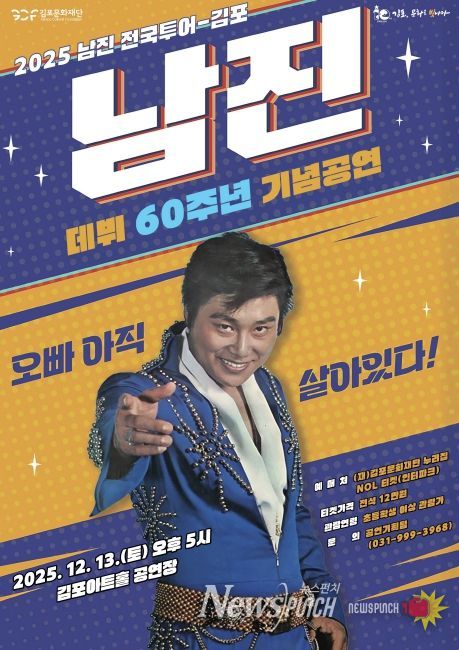 뉴스펀치 김길룡 기자 | (재)김포문화재단(대표이사 이계현)은 오는 12월 13일 김포아트홀에서 2025 김포아트홀 송년 기획공연 '2025 남진 전국투어-김포'를 개최한다고 밝혔다.