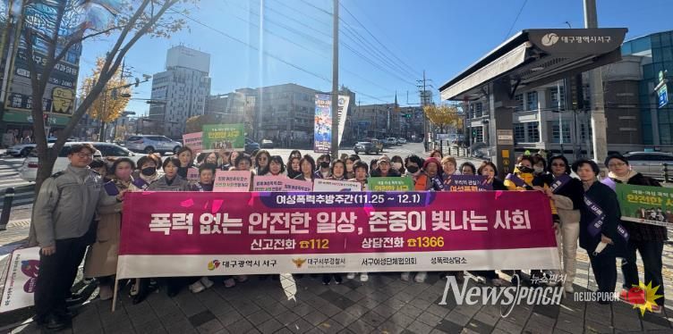 뉴스펀치 조평훈 기자 | 대구 서구는 지난 11월 28일 신평리네거리에서 여성 폭력 예방과 안전한 지역사회 조성을 위해 민관 합동 캠페인을 벌였다고 밝혔다.