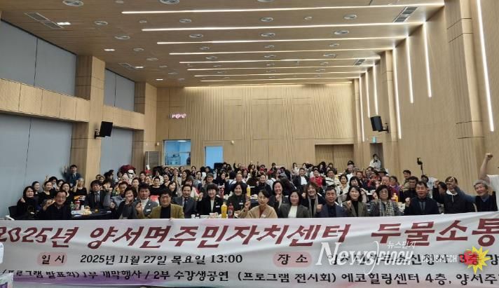 뉴스펀치 김길룡 기자 | 양서면 주민자치위원회는 지난 11월 27일 양서면사무소 대강당에서 ‘2025년 양서면주민자치센터 두물소통한마당’을 성황리에 개최했다.