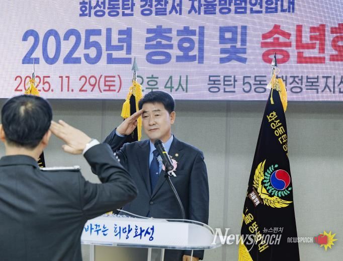 뉴스펀치 김길룡 기자 | 화성특례시의회는 29일, 동탄 5동 행정복지센터에서 열린 녩년 동탄자율방범연합대 종무식’에 참석해 올 한 해 지역 치안을 위해 헌신한 대원들을 격려하고 우수 대원 표창을 축하했다.