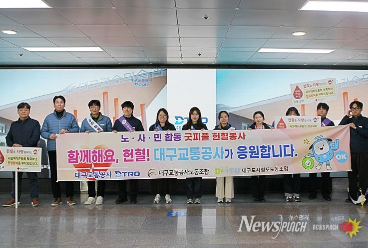 김기혁 대구교통공사 사장은 “공사는 안전하고 편리한 대중교통 서비스를 제공하는 데 그치지 않고, 지역사회에 실질적 도움이 되는 사회공헌 활동을 지속 확대해 나가겠다”며, “혈액 수급 위기 극복을 위해 앞으로도 시민들과 함께 생명 나눔 활동을 꾸준히 이어갈 것”이라고 말했다.