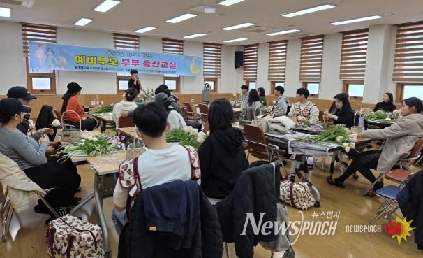 이번 프로그램은 예비 부모 15팀(30명)을 대상으로 신생아 돌봄 교육과 가을꽃을 활용한 꽃바구니 꽃꽂이 체험 등 실습 중심의 참여형 프로그램으로 진행됐다.