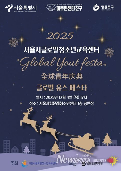 서울시는 4일 17시, 서울시립문래청소년센터에서 '2025년 송년발표회 글로벌 유스 페스타(Global Youth Festa)'를 개최한다고 밝혔다. 중도입국 청소년들이 1년간 서울글로벌청소년교육센터에서 배운 한국어 발표·동아리 공연·수료식 등 다양한 프로그램을 선보일 예정이다.