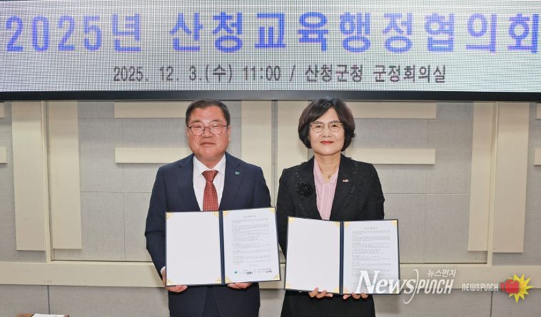 뉴스펀치 김길룡 기자 | 산청군은 3일 군청 군정회의실에서 산청교육지원청과 ‘2025년 교육행정협의회’를 가졌다고 밝혔다.