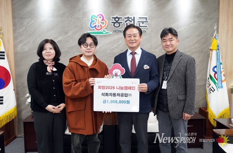 뉴스펀치 김길룡 기자 | 석화자동차공업㈜(대표 김영성)은 12월 4일 홍천군청을 방문해 어려운 이웃을 위한 성금 100만 원을 기탁했다.