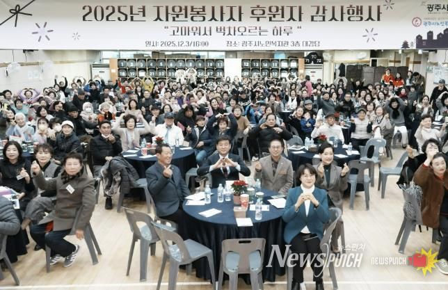 뉴스펀치 김길룡 기자 | 광주시노인복지관은 지난 3일 복지관 3층 대강당에서 ‘2025 자원봉사자·후원자 감사 행사, “고마워서 벅차오르는 하루’를 성황리에 개최했다.