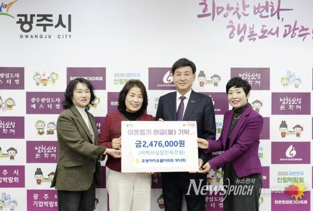 뉴스펀치 김길룡 기자 | 광주역우방아이유쉘아파트 부녀회는 지난 2일 지역 내 어려운 이웃을 위해 사용해 달라며 성금 247만 6천 원을 광주시에 기탁했다.