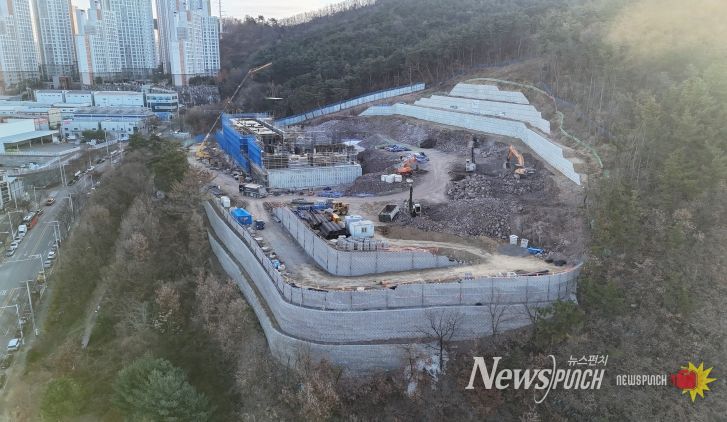 올해 2월 착공한 달서중·고 이전 신축 현장은 건물 외부 주요 옹벽공사를 완료하고, 현재 중·고등학교 건물 골조 공사에 한창이다.