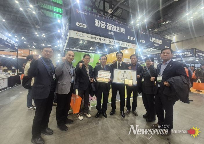 뉴스펀치 김길룡 기자 | 성주군은 지난 11월 30일, '성주황금꿀참외떡'이 농협경제지주가 주최·주관하고 농림축산식품부가 후원하는 ‘2025 우리쌀·우리술 K-라이스페스타’에서 쌀가공식품 조리 부문 대상으로 선정돼 농림축산식품부 장관상을 수상했다고 밝혔다.