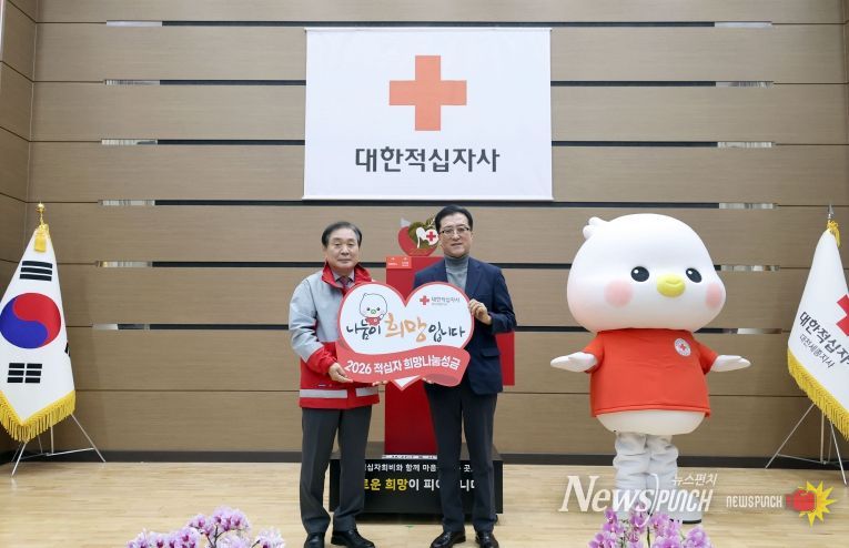 뉴스펀치 김길룡 기자 | 대전시의회 조원휘 의장은 4일 대한적십자사 대전세종지사에서 열린 ‘2026년 적십자 희망나눔 모금 선포식’에 참석해 연말연시 지역사회의 나눔 확산과 사회적 연대 실천의 의미를 강조했다.