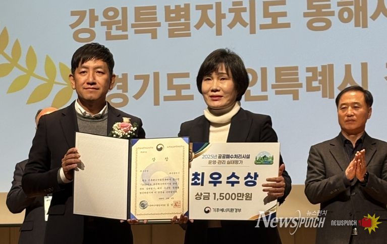뉴스펀치 김길룡 기자 | 대전시는 기후에너지환경부가 실시한 ‘2025년 공공폐수처리시설 운영·관리 실태평가’에서 Ⅰ그룹(일일 처리용량 10,000㎥이상) 부문, 전국 1위를 차지해 4일 제주도에서 개최된 시상식에서 최우수 지자체 표창을 받았다.