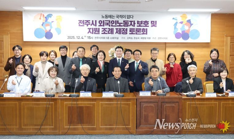 뉴스펀치 김길룡 기자 | 전주시의회는 4일 의회 5층 소회의실에서 ‘전주시 외국인노동자 보호 및 지원 조례 제정 토론회’를 열고, 외국인노동자 보호를 위한 제도 개선 방안을 논의했다.